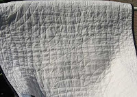 On the left are the fabrics. There's always at least one I never would've bought on purpose (that'd be the third from the right)! And on the right is the finished back......notice the giant quilted cobweb.I call this "Ghost of Pac Man." It uses all six challenge fabrics (even the really ugly one) with one addition (the black). This is certainly not an award winner, but it was fun and a challenge.